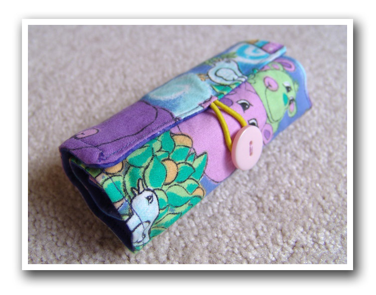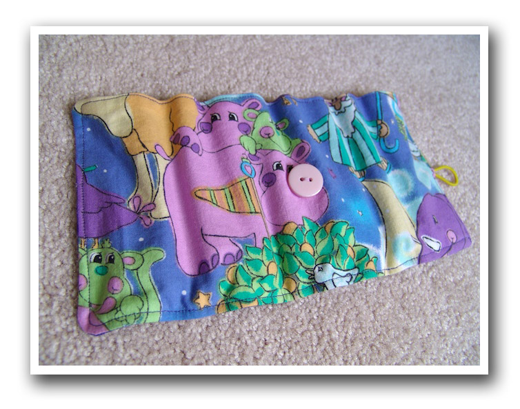 A couple of weeks ago my neighbours little one turned two. Knowing that she was going to get a ton of huge gifts from family and friends, I wanted to make something simple that would get used. So I thought another crayon roll was just the ticket.
