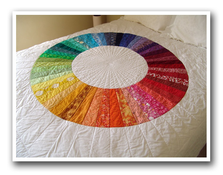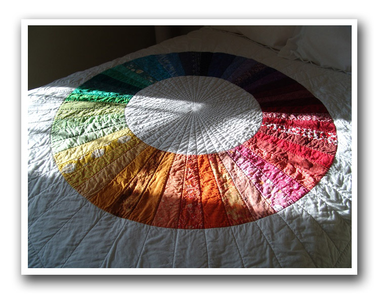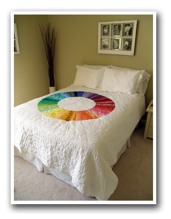 When I first saw Last Minute Patchwork and Quilted Gifts, my very favourite project was the Color Wheel Quilt. I knew for sure that I was going to make it, and once I finished my beginner quilting class I felt that I had enough skill to get a finished object that I would be happy with.