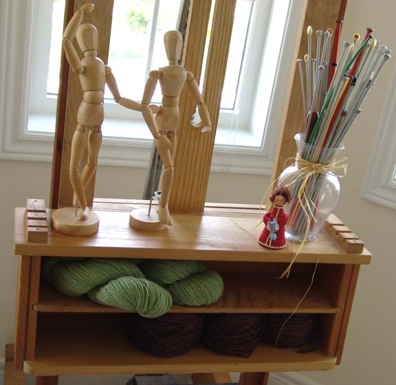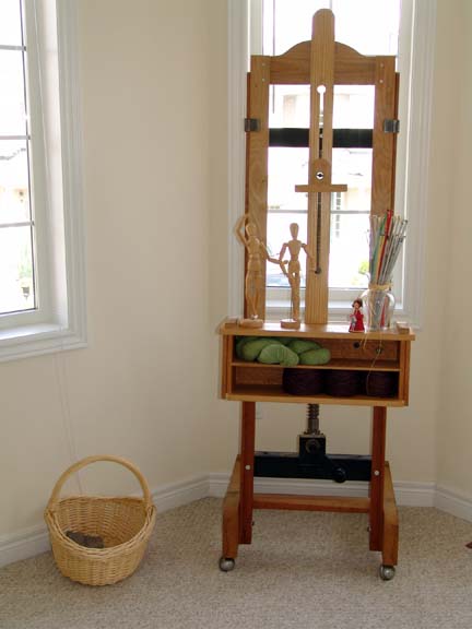 This is the easel that my grandfather built for me when I was very young. It is completely handmade, very much in my grandpa's style (pretty much perfect). It brings back great memories for me, and I am so pleased to be able to have a space for it.