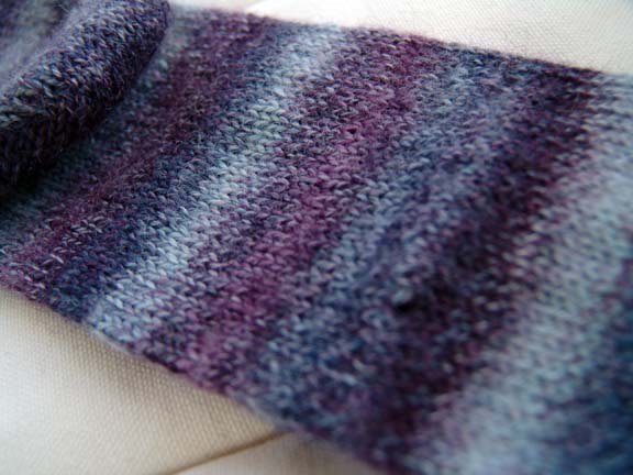 The new longer commute to work is allowing me quite a lot of time to work on my sock knitting. I have plugged through the first purple Trekking sock and I am almost at the heel of the second one.
