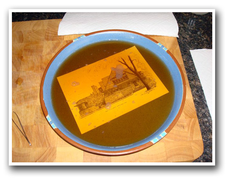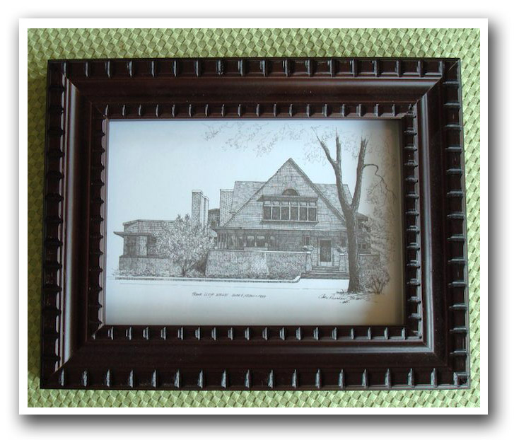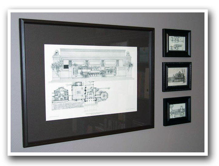 Last year when TJ and I were in Chicago, we did the Frank Lloyd Wright tour, and bought a couple of prints. I didn't really notice at the time that one was cream or antiqued colour, and the other was white. When I framed the two of them and hung them, the white one really stuck out. Solution? Tea!