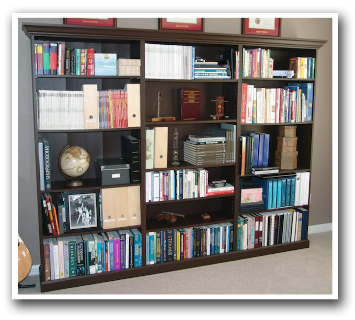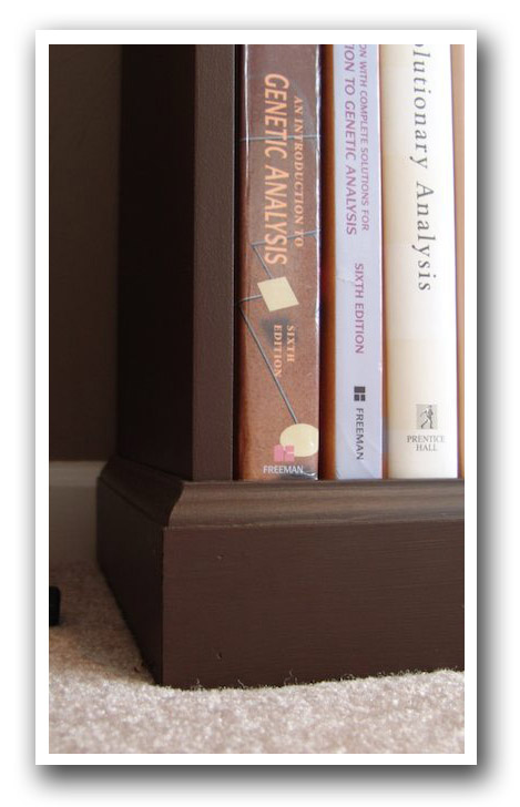 When I met TJ way back in 2001, he had a bookshelf from Ikea that he had been using for several years already. There had been a flood in his basement apartment, so there was a lot of damage up the side of the particle board piece. But, when we finished school we didn't have any money, so we kept it and hoped it would just hold together ok.