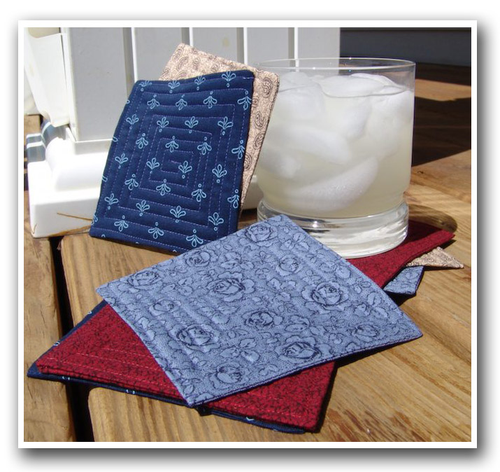 They were a fun little project to make, and I am thinking of doing some for myself, because I would imagine that they soak up the condensation from a cold drink well and they are washable. That and I have so many fabrics pieces to work with!