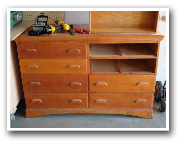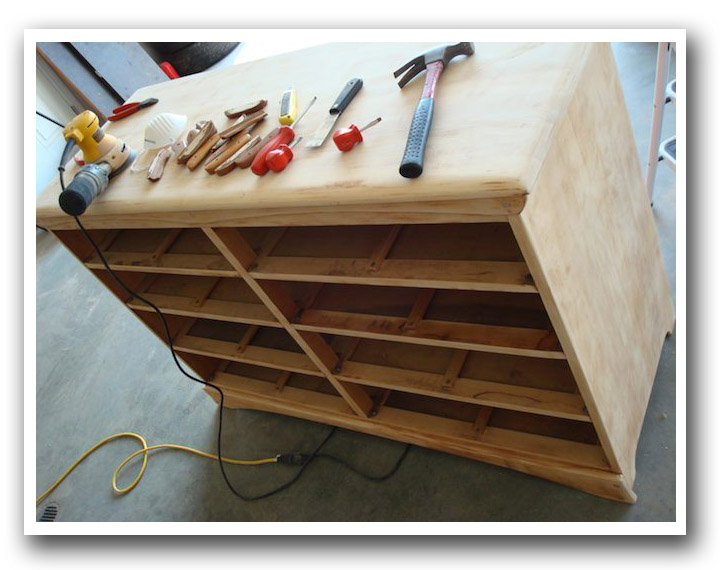 Then I sanded the living daylights out of the dresser to remove the old finish. This took about two full days.