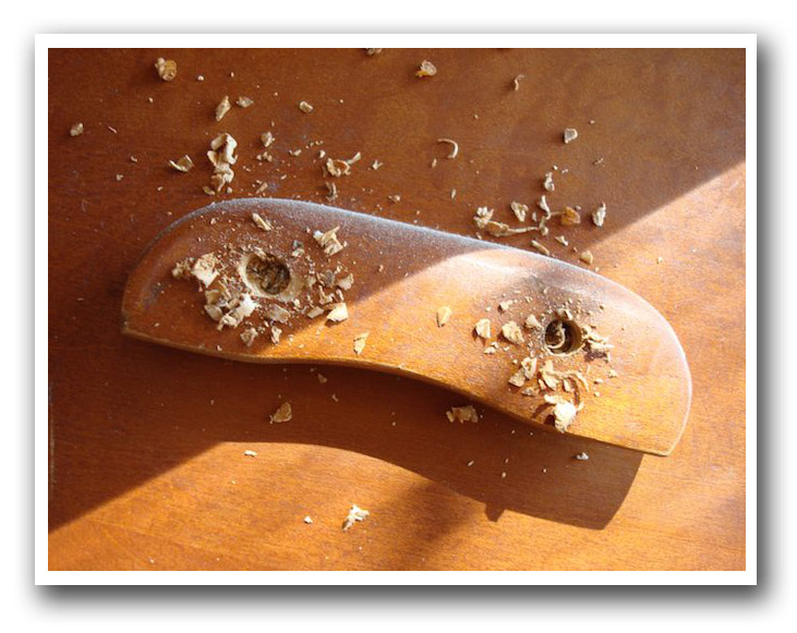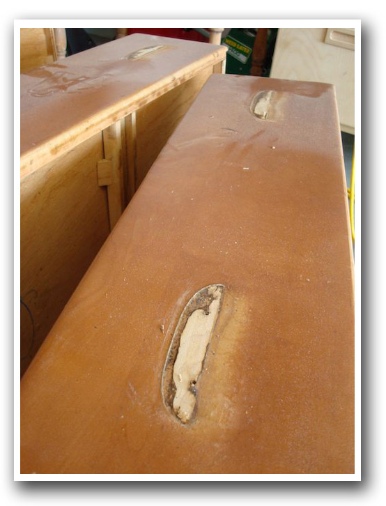 I patched the holes and dents where the handles were, as I knew I only wanted to have one handle on each drawer.
