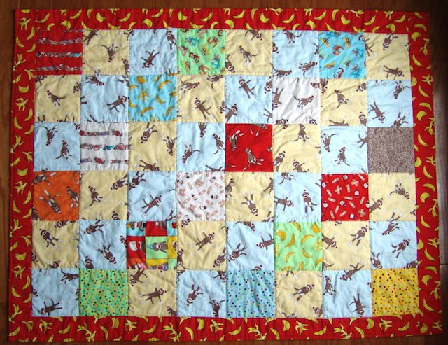 Since the last monkey quilt was a success, I figured I would make another one! But would you believe I forgot to take a picture of it? Michelle - could you fire me an email with a picture of your quilt? In the meantime, here is the last one that I made to remind you (they were pretty close to the same)