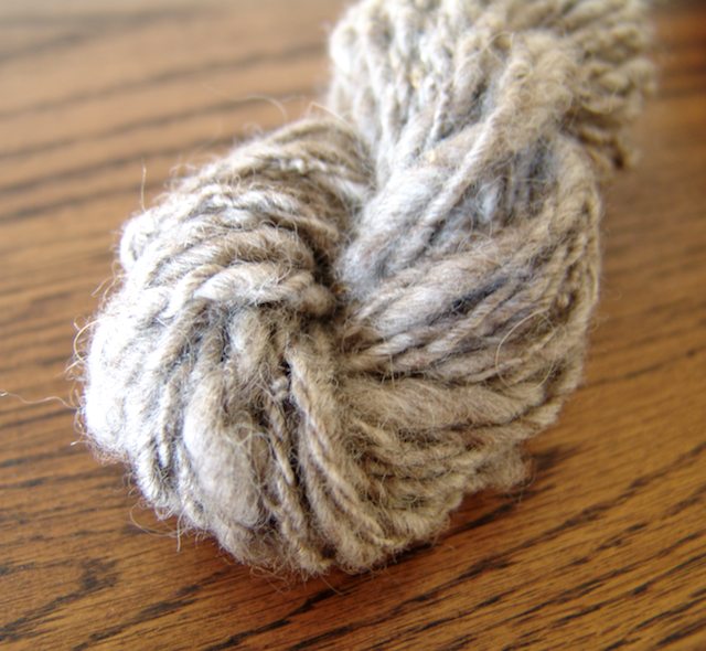I plied it using my drop spindle, as we just wound it off Nikki's bobbin with a yarn winder. I felt more like I was getting the hang of it near the end, but it is still REALLY slubby. I will use it someday as an accent in a handwoven scarf.