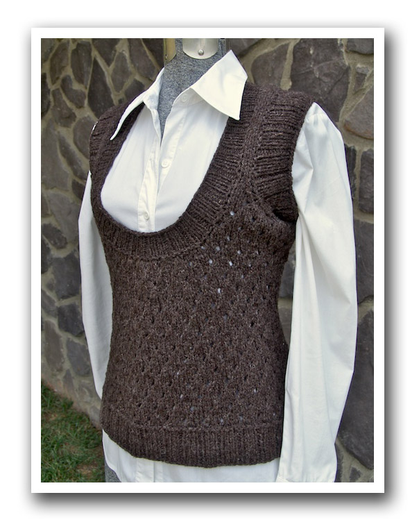 I bought the yarn for this sweater on a trip to Maine in October of 2004. I think it was the oldest sweater quantity of yarn in my stash. I had started to knit this pattern about three times, but when I started last September (man that's sad) I finally had it looking how I liked.