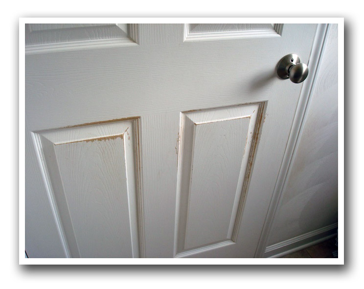 Evidence of dog damage from the previous owners (they locked the dog up all day)