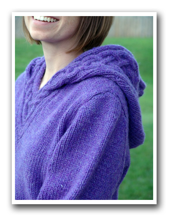 I had a bit of a panic at one point because I finished the knitting with just enough yarn to graft the hood together. Which meant there was nothing left to sew the sleeve seams and set them into the body. Jenn was kind enough to lend me some yarn from her current project that was close enough to the original colour that it worked out perfectly. Thanks Jenn!