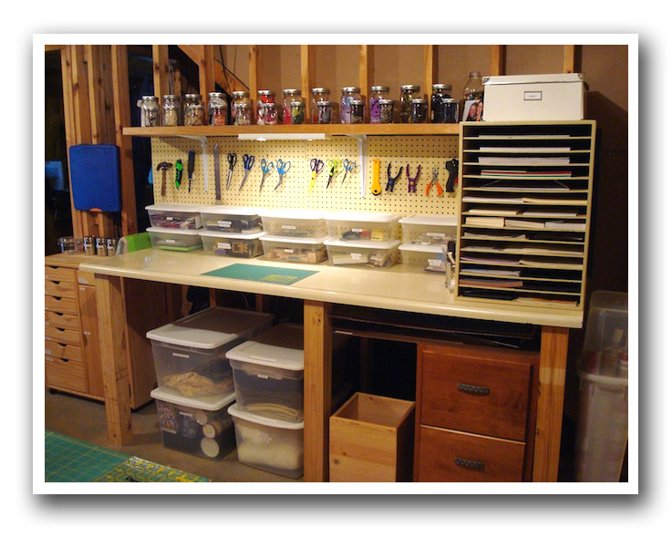 I have mentioned a few times that I have been pretty frustrated with my studio and it's level of organization. As I have tried all kinds of different crafts, I have accumulated supplies and tools for each of them and they were in all manners of disarray in my studio. Friday morning when I went downstairs to make some cards, something snapped. I started ripping everything apart and suddenly 'saw' what needed to happen in there to fix the space. I'm warning you, this is a long one.