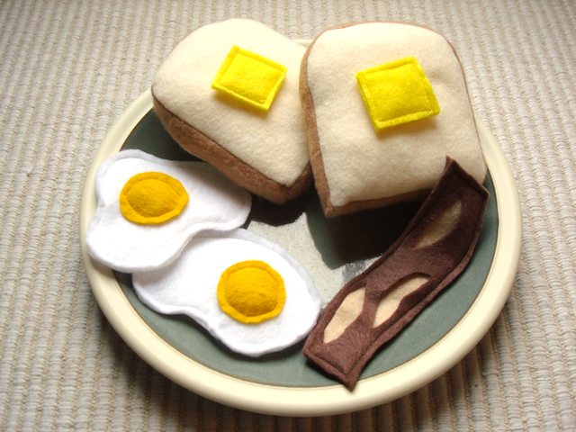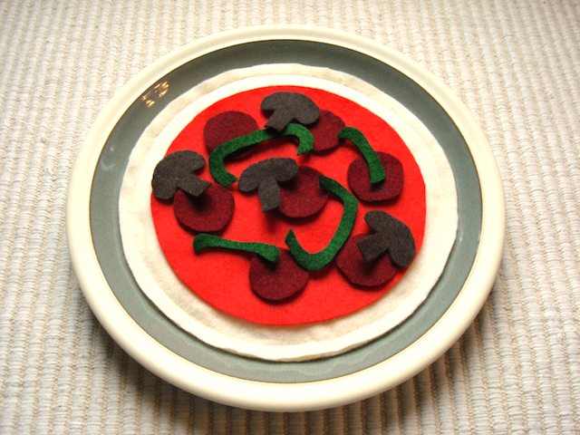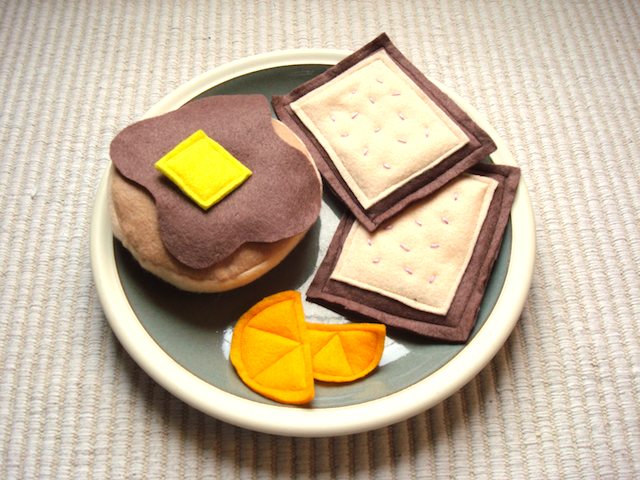 As for project details - I just used sheets of felt from Michaels and cut them out into appropriate shapes. I used stuffing for the larger pieces and quilt batting for the thinner things. Everything is sewn together except for the cookies, which are just glued together with fabric glue.