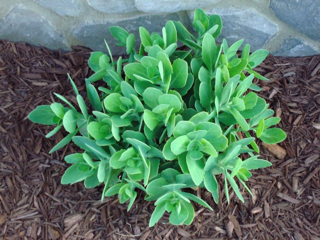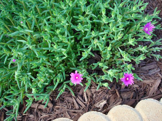 Plant #8: I have a few of these guys. There are big flat ground cover, and they are quite rubbery. And they have these pretty little purple flowers.