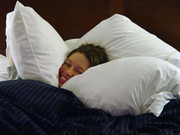 Me, buried in the Sweet Sleeper bed in the Sheraton in South Portland, ME
